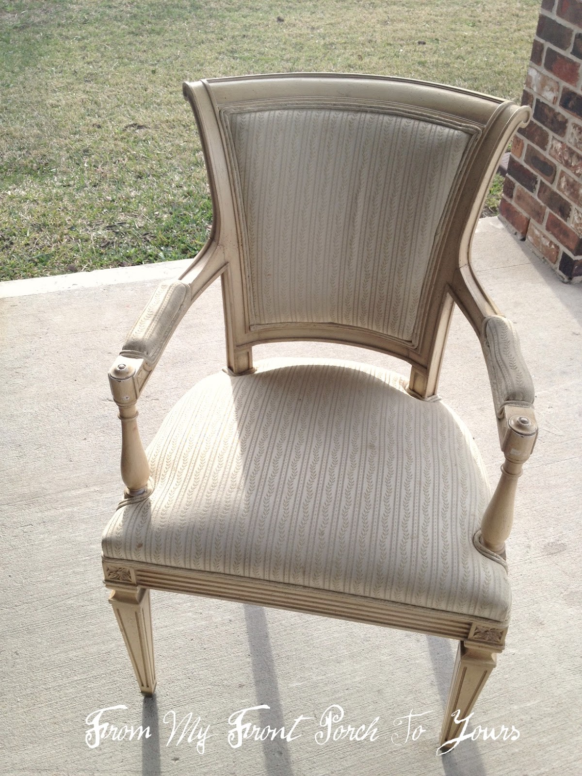 | About a month ago I shared with y'all that I purchased two awesome Napoleon chairs that have fabulous potential. They intimidated me something fierce but I HAD to have them. The past few weeks I have been helping out my dear friend Jennifer who owns Metamorphosis Studios. She is an upholstery queen if there ever was one and I am thankful that she asked me to help out! After watching her work her magic I finally decided I was now brave enough to start tackling these chairs. Well at least one of them!;) |