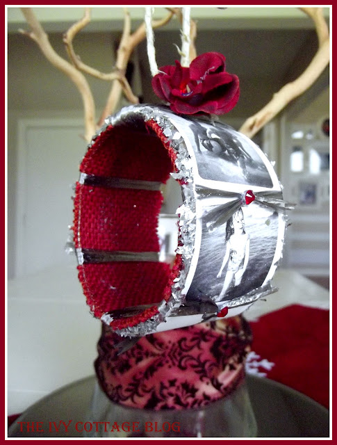 Step #10: Embellish your ornament! I used metallic raffia to accent the space in between each of the photos.